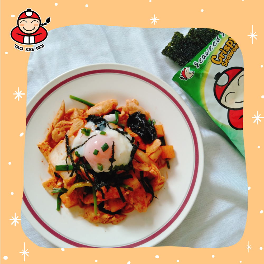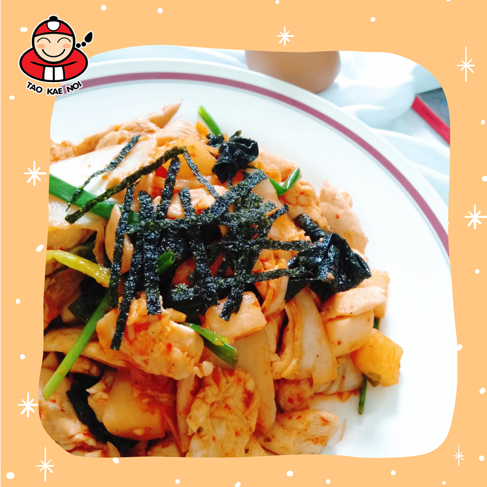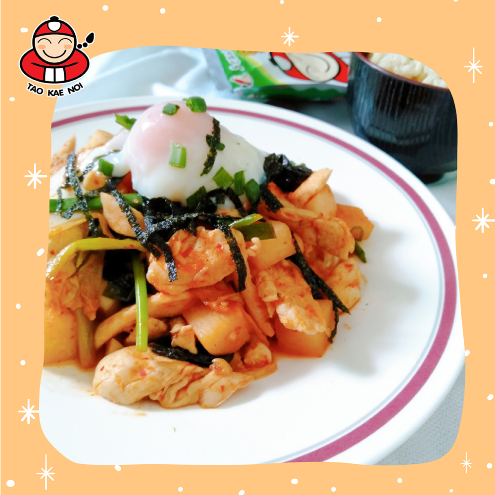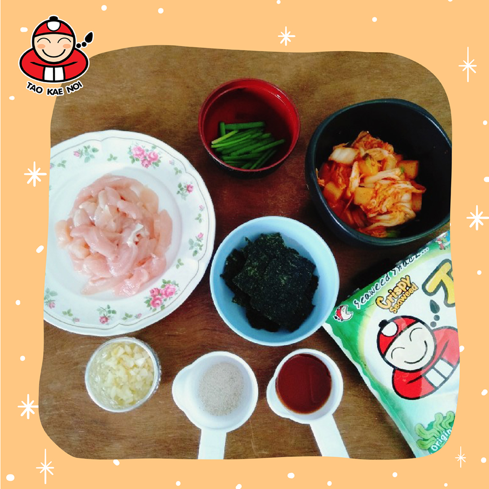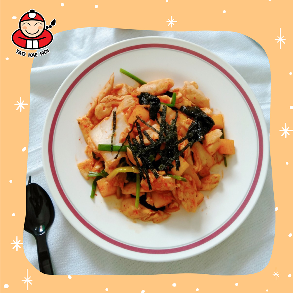 2. បន្ថែមគីមឈី ឆាចូលគ្នាអោយសព្វ។